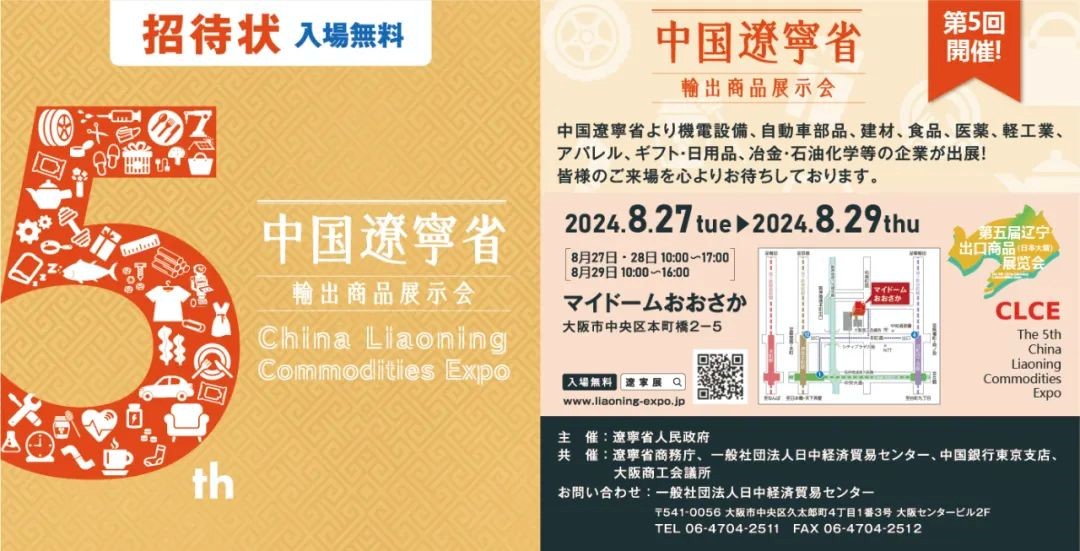 遼寧出口商品展覽會(huì)是由遼寧省人民政府主辦,遼寧省商務(wù)廳、日中經(jīng)貿(mào)中心、中國(guó)銀行東京分行、大阪商工會(huì)議所共同承辦,旨在向日本市場(chǎng)展示遼寧省優(yōu)秀商品,精英企業(yè)的一個(gè)大型綜合類展會(huì)。